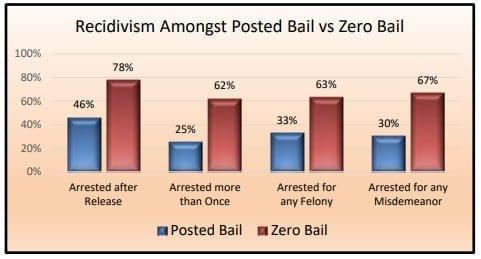 As you can see, the results showed that the cashless bail and zero bail policies are not effective at keeping our communities safe. When financially secured surety bail is eliminated as a tool from the courts, more crime is committed, more victims are created and public safety is severely impacted.
